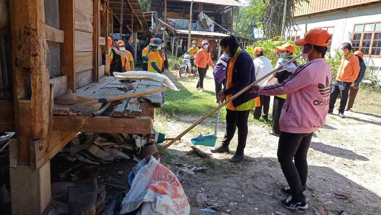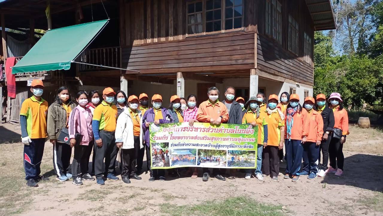 องค์การบริหารส่วนตำบลโนนผึ้งร่วมกับโรงพยาบาลส่งเสริมสุขภาพตำบลทุ่งเกษม ร่วมกันทำความสะอาดบ้านผู้สูงอายุที่มีภาวะพึ่งพิง